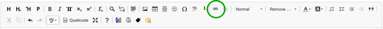 2. Im Anschluss kann der entsprechende Link zur neuen Seite im Texteditor platziert werden. Drücke in der Menüleiste des Editors auf den Button „Link einfügen / editieren“.
